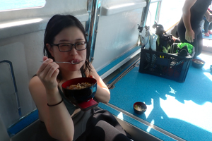 島陰でランチを食べてから!