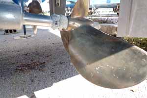 たま~にスタッフが水中でこすっているペラ。地味な作業ですが、