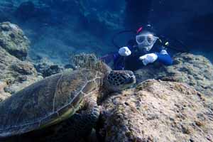 いきなりシュノーケルでカメ!