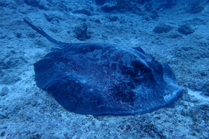マダラエイとウミガメ、そしてIさんの3ショット!