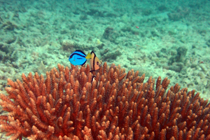 フタスジリュウキュウスズメダイとナンヨウハギ