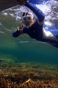 リーフがとっても浅くシュノーケルでサンゴ満喫エリアでございます!
