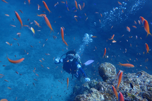 アカネハナゴイやクマノミなど綺麗な魚も探しつつ、