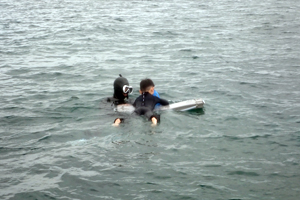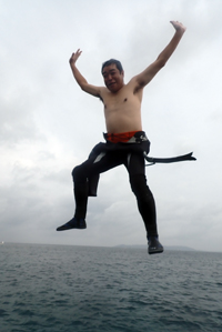 朝は・・・泳げないから!!と言ってウェットスーツは着ないでライフジャケット