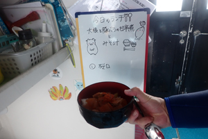 今日のランチは!「大根と豚バラ甘辛煮丼 と もずく味噌汁」でした!