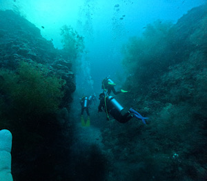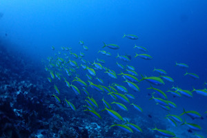 根の周りにはテンジクダイやハナダイを始めとした小魚がびっしり!
