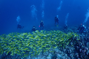 ワンチャンス狙いで水中からも見れる可能性のあるポイントでダイビングを!