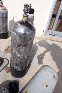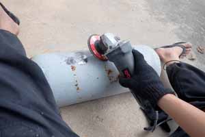 タンクの表面にある錆と去年塗った塗料をはがしていきます!!